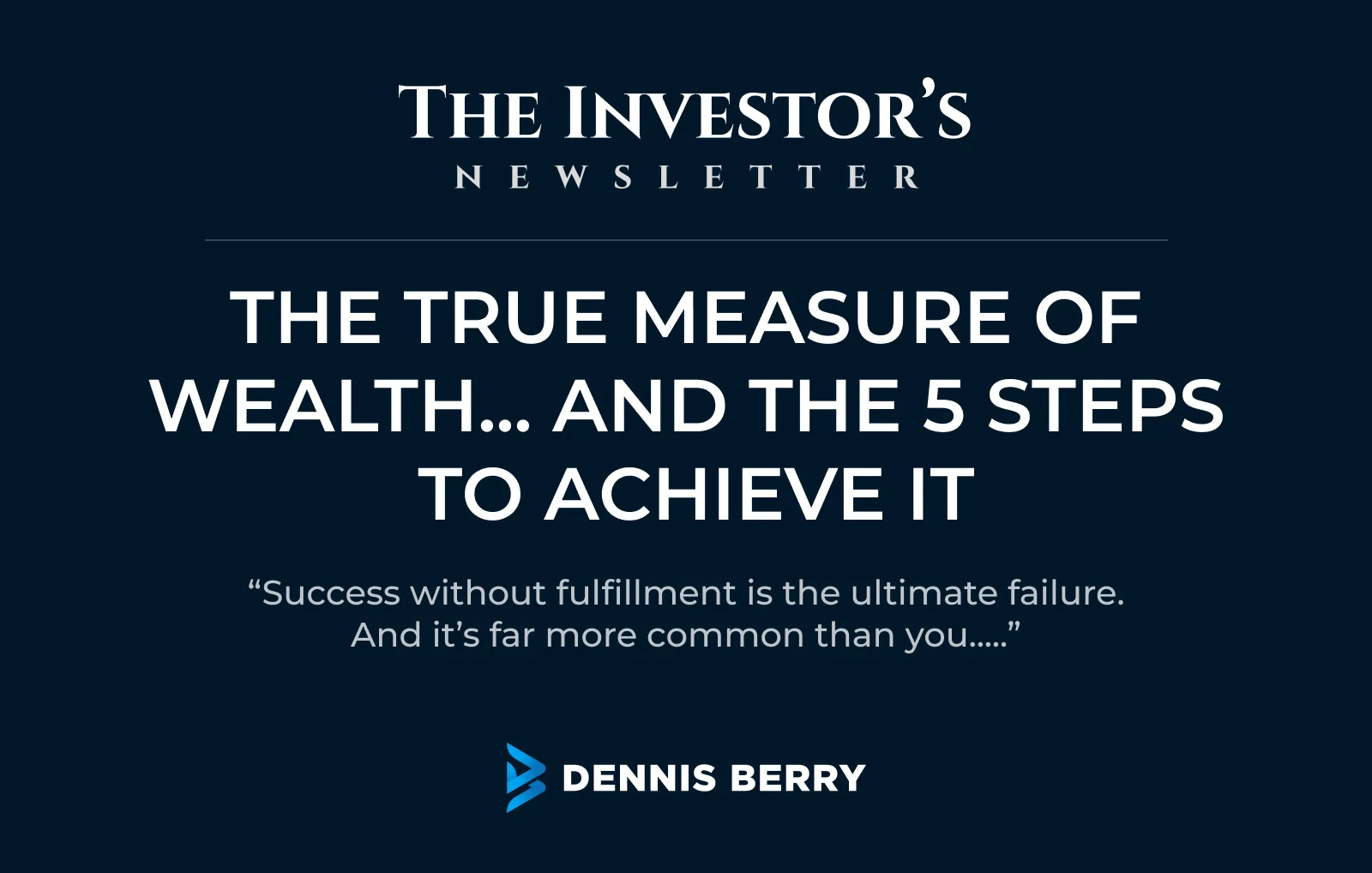 Your Journey to True Wealth Starts Here. Get weekly insights and actionable advice delivered to your inbox with The Investors Newsletter.
